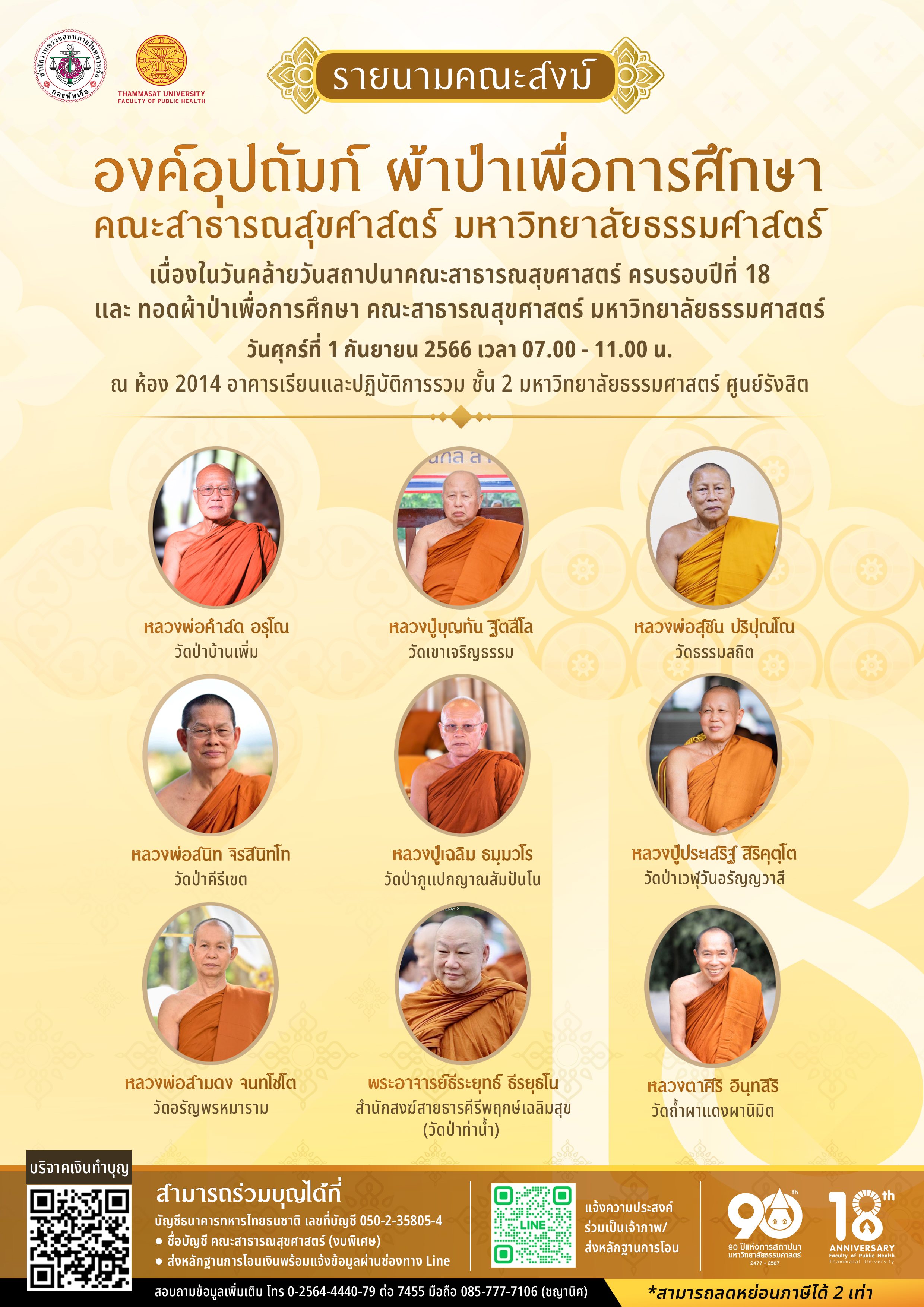 ขอเชิญร่วมงานวันคล้ายวันสถาปนาคณะสาธารณสุขศาสตร์ มหาวิทยาลัยธรรมศาสตร์ ครบรอบปีที่ 18