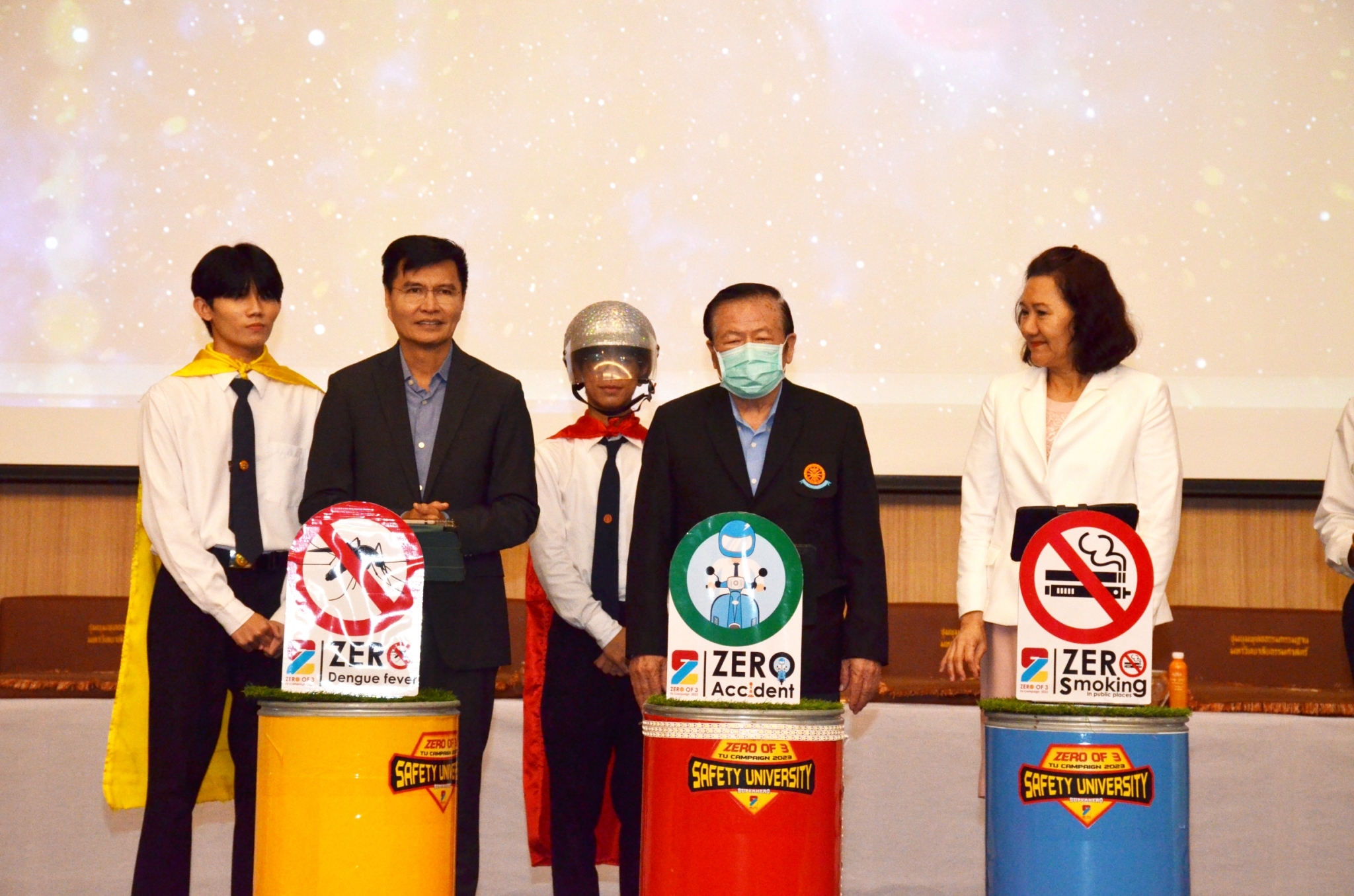 ด้วยจิตวิญญาณอันมุ่งมั่นได้ดำเนินงานโครงการ Safety University ต่อเนื่องเป็นปีที่ 4 และในปีนี้ได้ดำเนินงานภายใต้คอนเซ็ปต์ Zero OF 3 TU Campaign 2023 คือ 3 ภารกิจหลักในการดำเนินงานด้านการส่งเสริม ป้องกัน และควบคุมปัจจัยเสี่ยงด้านสุขภาพและความปลอดภัยให้เป็นศูนย์ ผ่านรูปแบบการแสดง และการรณรงค์ หรือ "แฟลชม็อบ" ที่น่าสนใจ ประกอบด้วย
