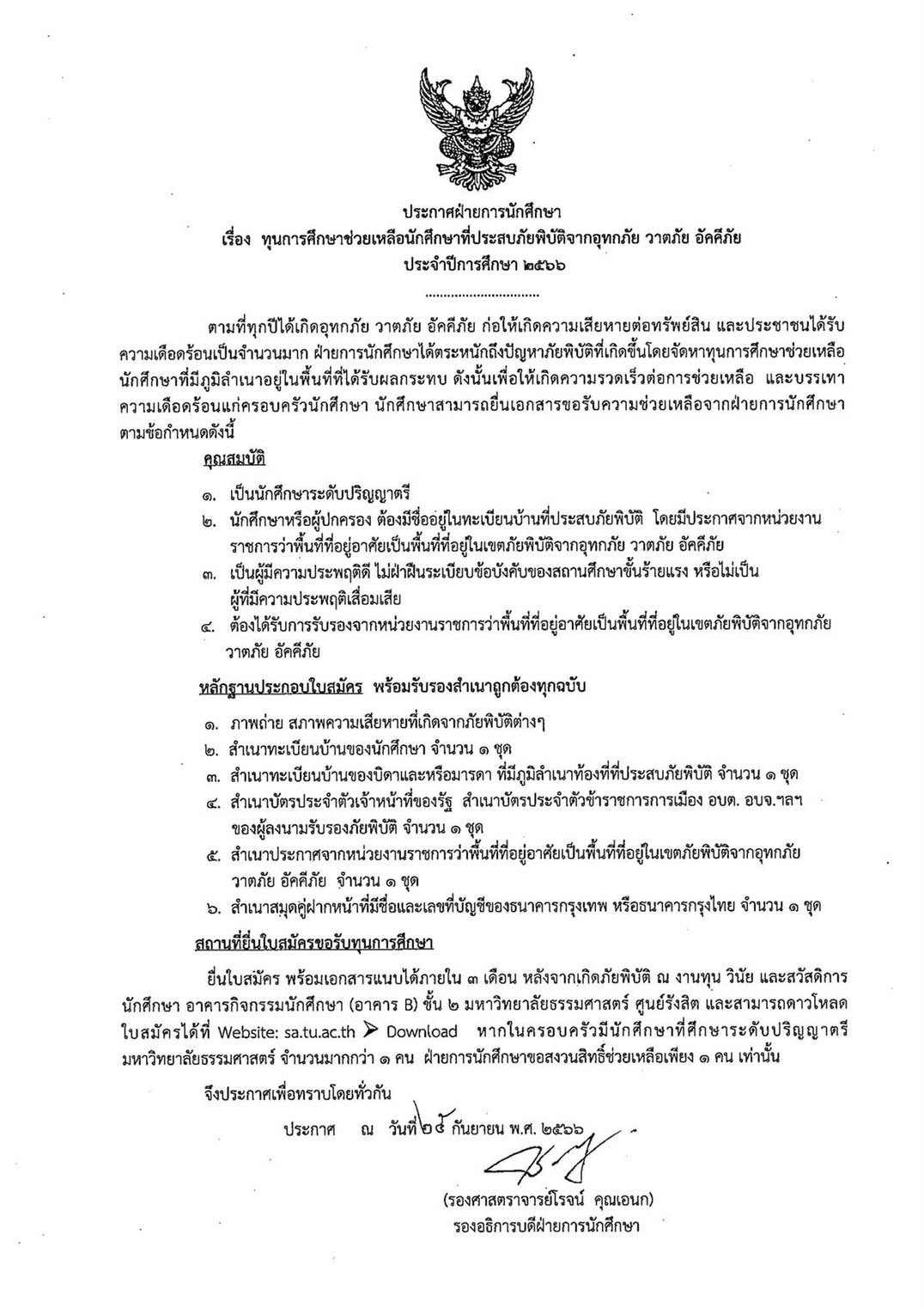 สำหรับนักศึกษาระดับปริญญาตรีที่ประสบภัยพิบัติ