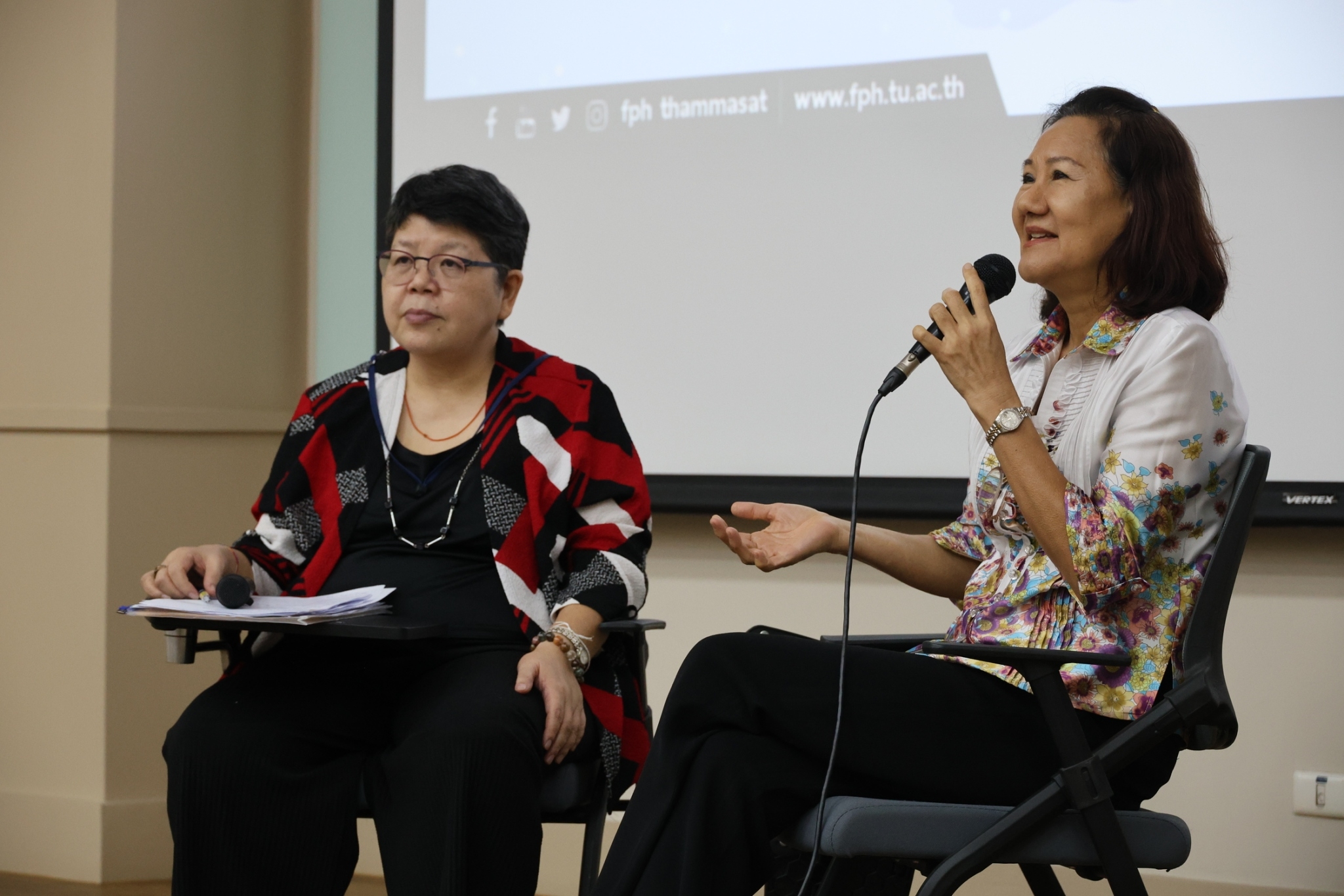 นำการเสวนาโดย รศ.ดร.สสิธร เทพตระการพร คณบดีคณะสาธารณสุขศาสตร์ มธ.